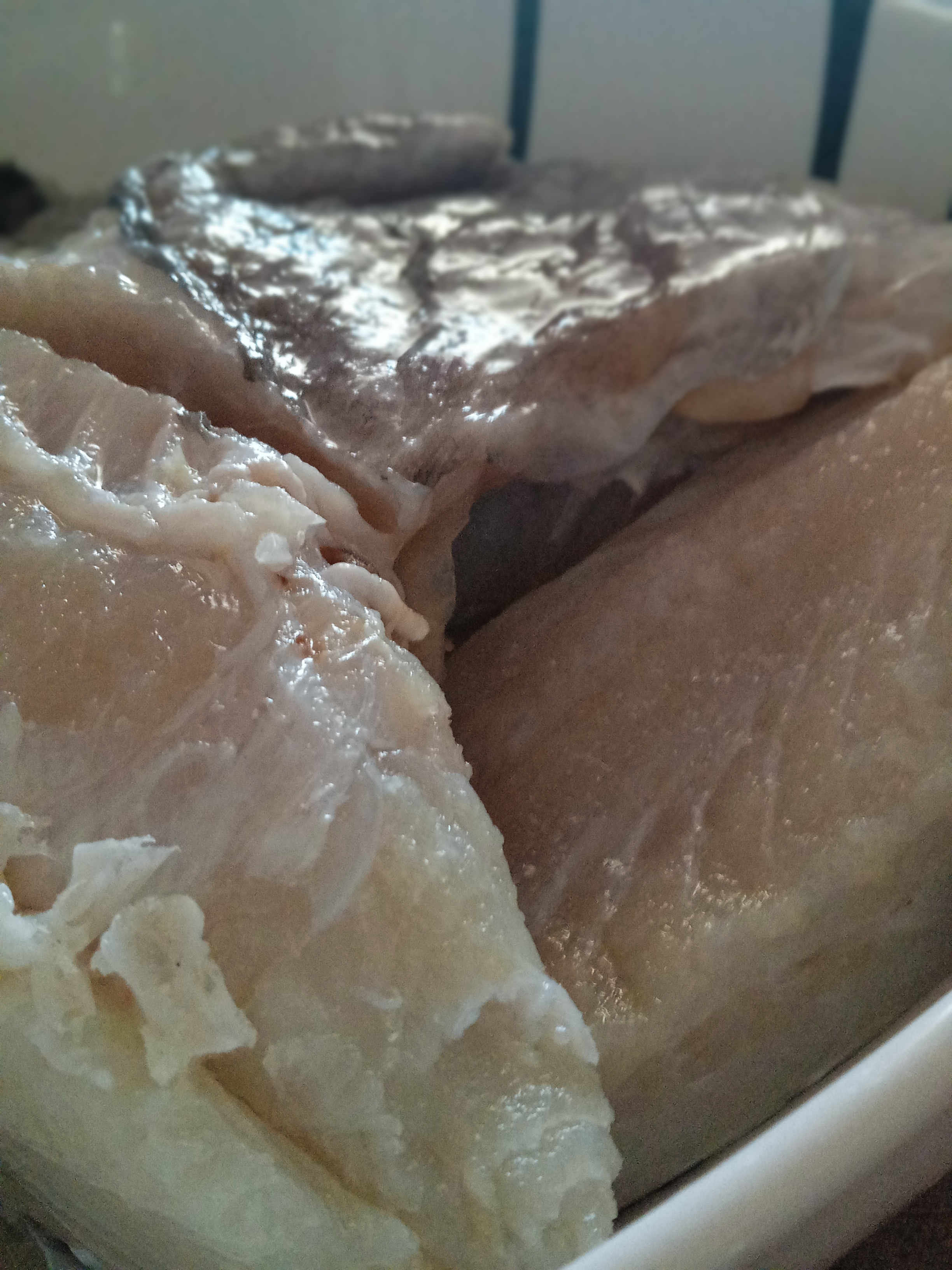 Una vez cortado en trozo, tiene que estar 24 horas a remojo en agua y en la nevera y solo cambiaremos el agua UNA sola vez, pasadas ya 12 horas.