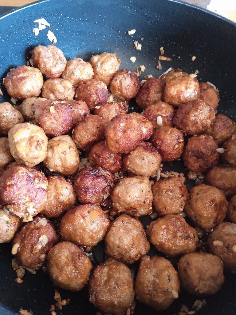 - En una sartén aparte, poner aceite suficiente para dorar las albóndigas por todos los lados.
