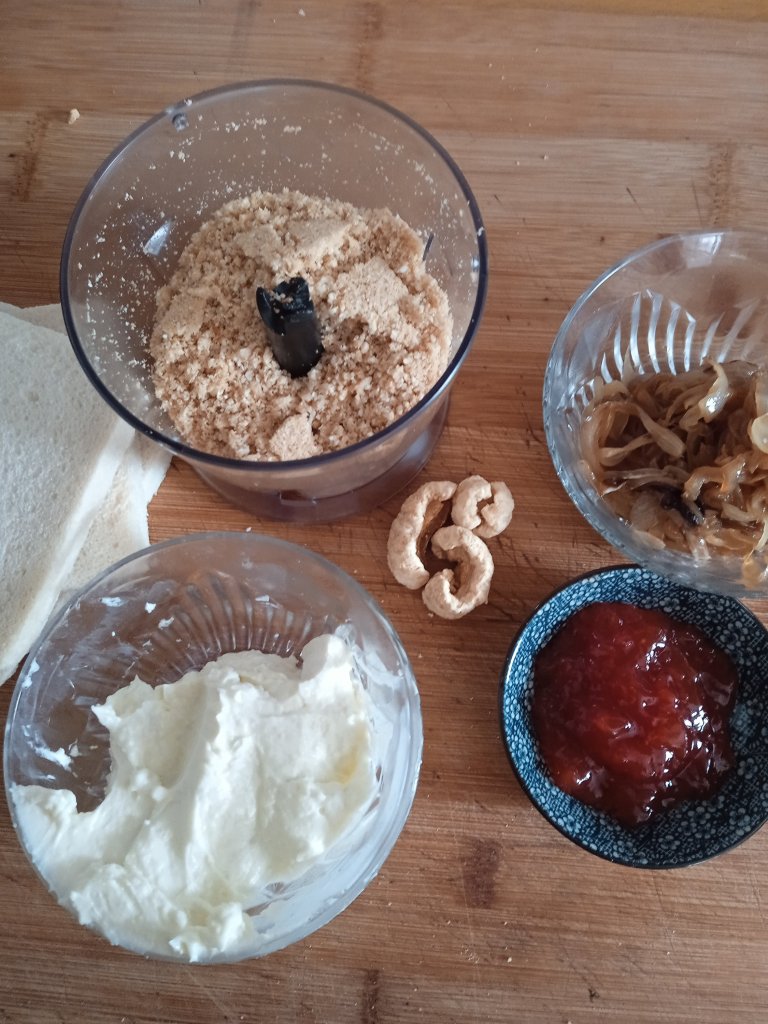 - Unta con esta crema de queso las rebanadas de pan generosamente.