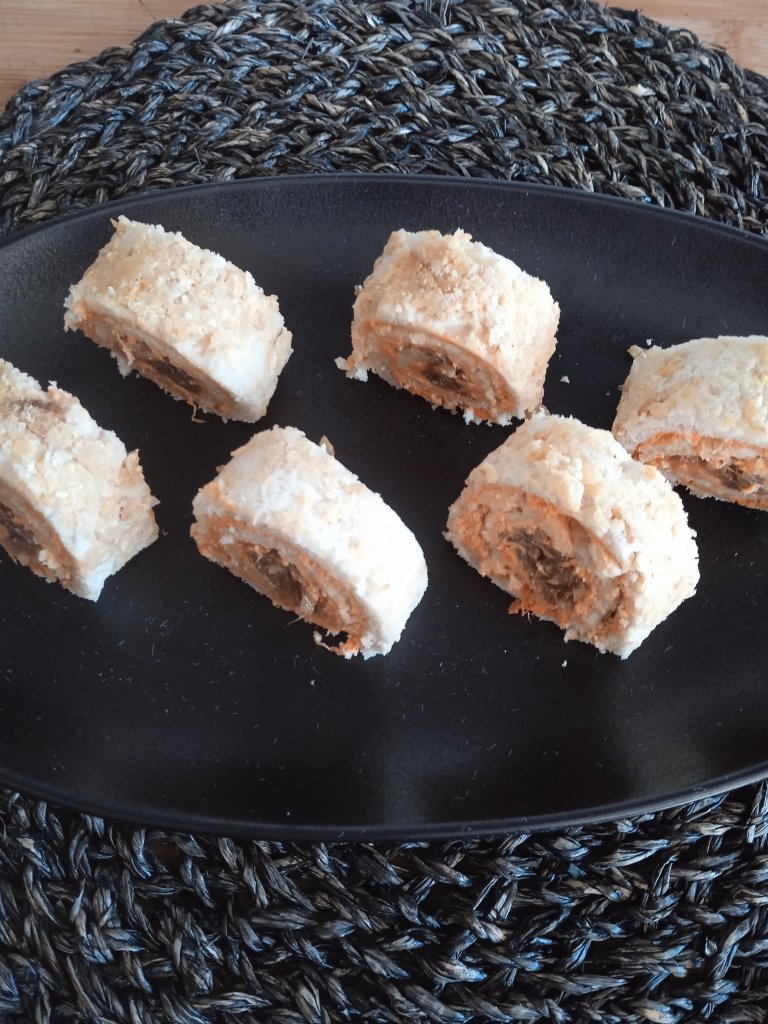 - Y enrolla sin apretar mucho para que no se salga el relleno