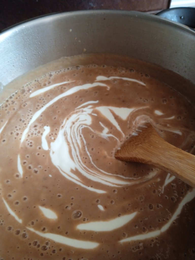 - Una vez triturada la crema y este en el fuego no dejes de removerla bien, sobre todo en el fondo, utiliza una paleta de madera y pasala por todo el fondo, pues como todas las cremas se puede quemar.