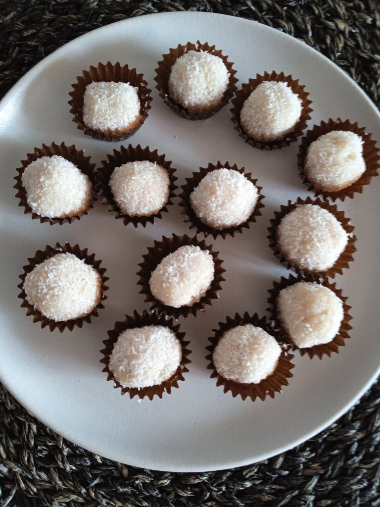 - Rebozada por el coco rallado e introduce la en su capsula de papel.