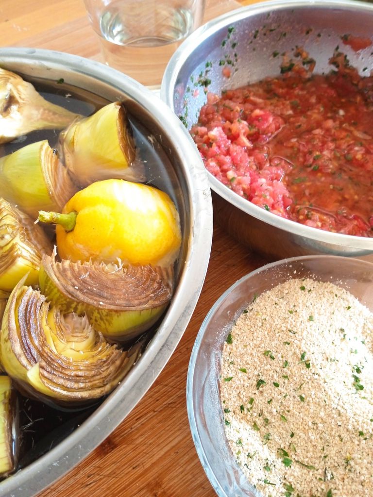 - Te recomiendo que sobre los 45 minutos compruebes la cocción pinchado las alcachofas., pues depende del tamaño y horno.