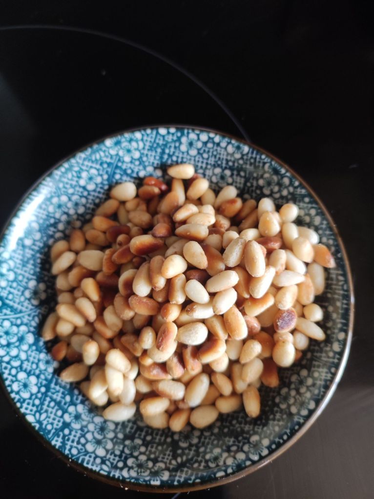 - En una olla o cazuela mediana dorar los piñones y reservar.