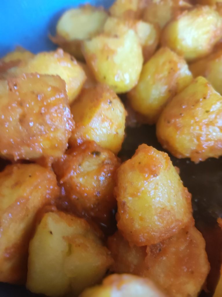 Recuerdo que con 13 años engañaba a mi querida amiga María José, diciéndole que iba a preparar unas estupendas patatas bravas y como ella, agradecida, me decía que estában buenísimas, y no voy a mentir, eran patatas fritas en taquitos con un poco de pimentón que no era ni picante, y alguna vez simplemente ketchup, coronado con un estupendo (eso sí) ajoaceite, eso es la amistad.