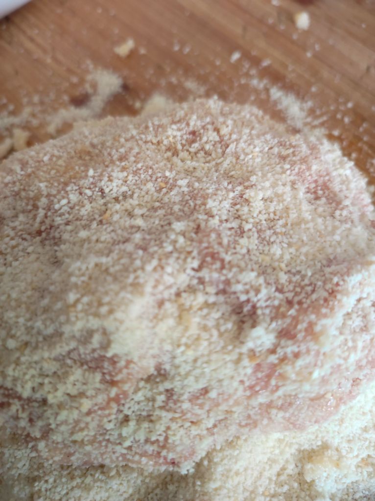 - Prepara un plato con el resto de los huevos batidos y otro con el pan rallado.