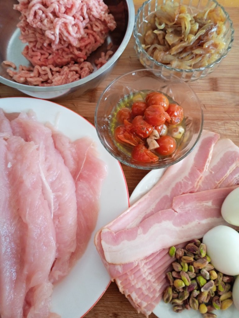 - Dili a tu carnicero que te corte la pechuga de pavo o los solomillos en forma de libro y no muy gruesos .