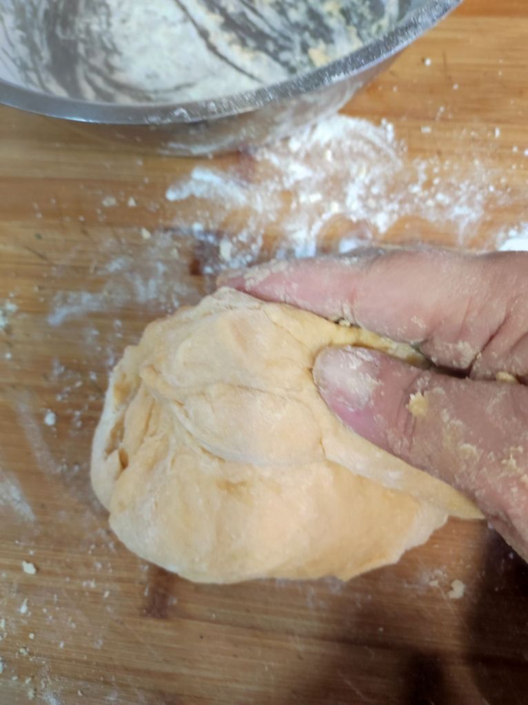 - Amasa con las manos hasta que no se peque a ellas añadiendo poco a poco más harina si es necesario.