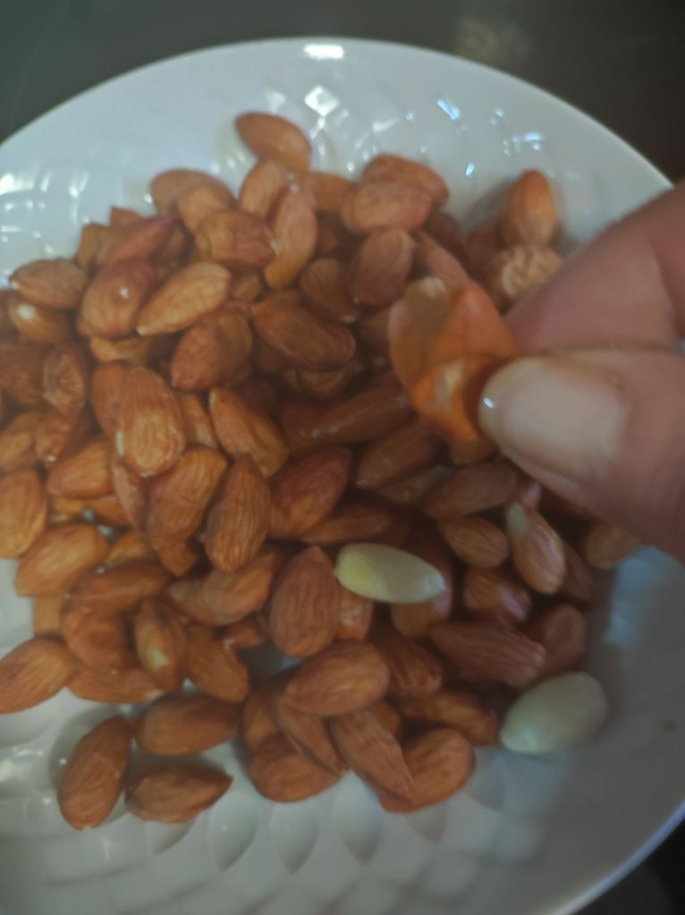 - Si utiliza almendras naturales con piel, solo tendrás que escaldar en agua hirviendo durante 15 – 20 segundos y pelarlas calentitas pellizcando la piel, cuidado que salen como balines.