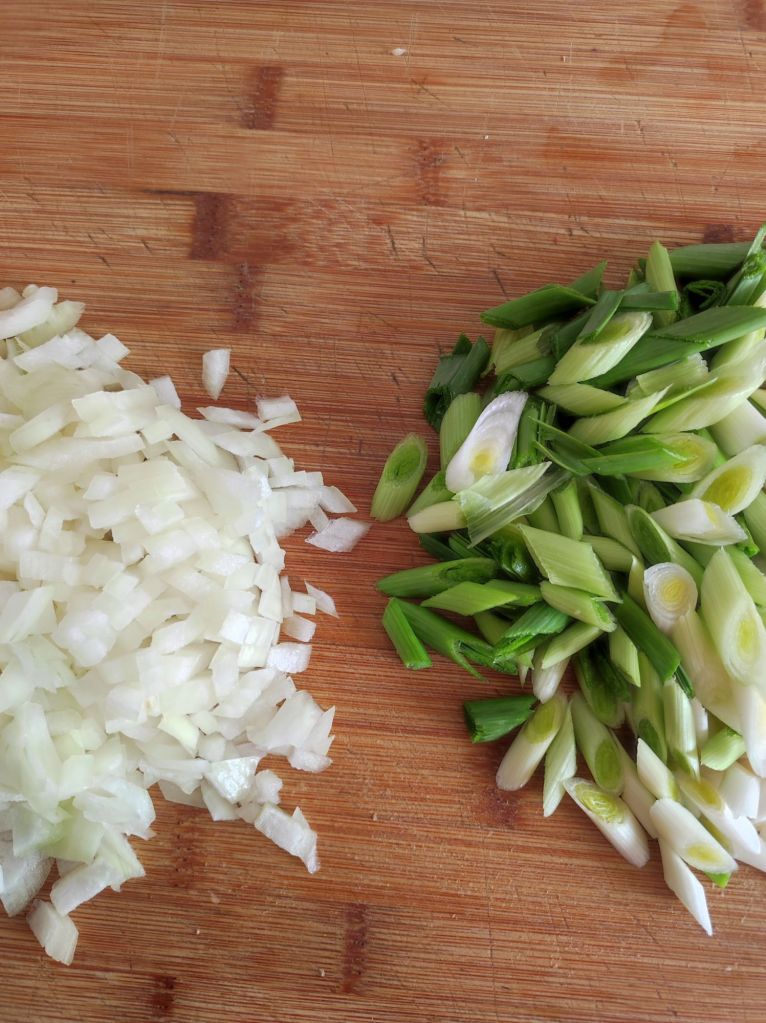- Pela y corta las cebollas a cuadritos pequeños.