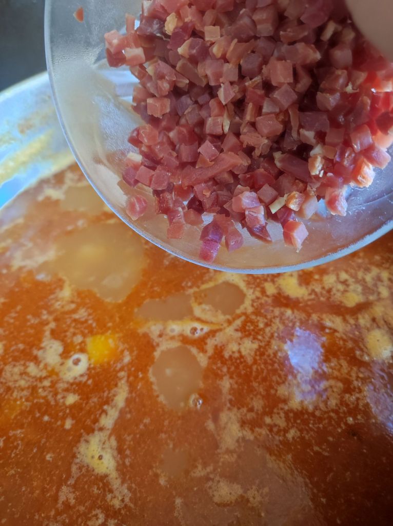 - Incorpora los huesos de jamón y el laurel, y que empiece a cocer a fuego medio.