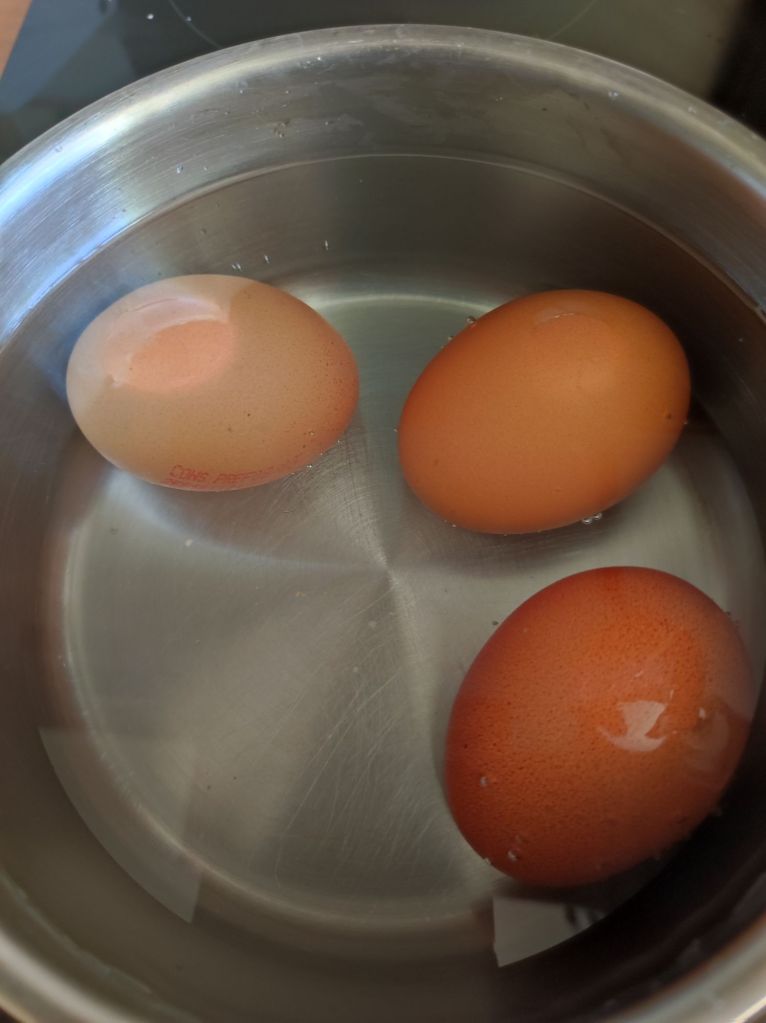 - Pon los huevos a cocer durante 10 minutos, luego enfría y reserva.