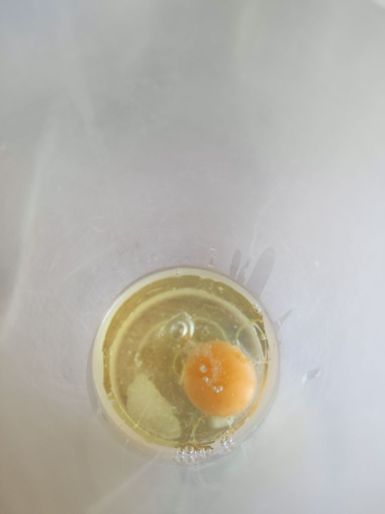 - Pon la clara y la yema dentro del vaso batidor y añádele una pizca de sal.