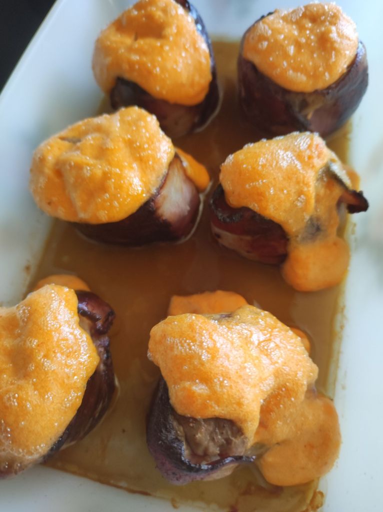 - A la hora de marcar el beicon no te pases pues en el horno se termina de dorar.